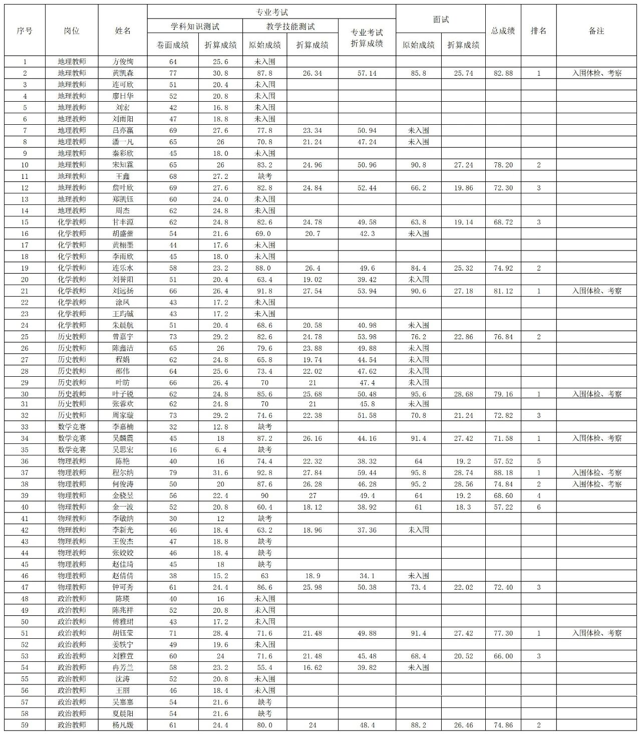 2026年浙江金华市教育局所属学校浙江金华第一中学公开招聘教师成绩公布